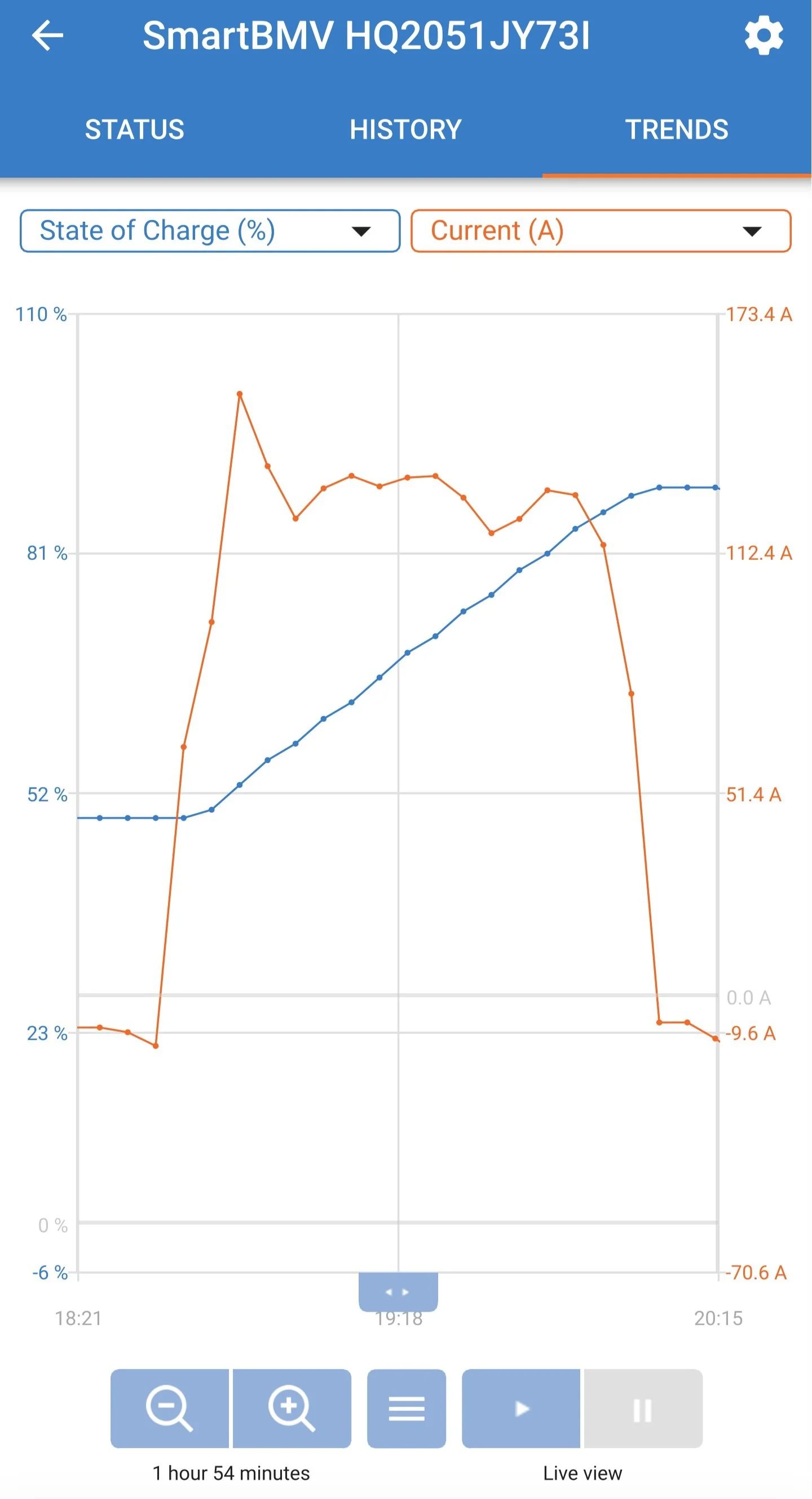 Monitoring charge via our Victron Energy SmartBMV monitor.